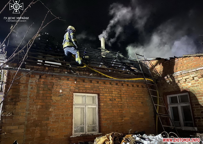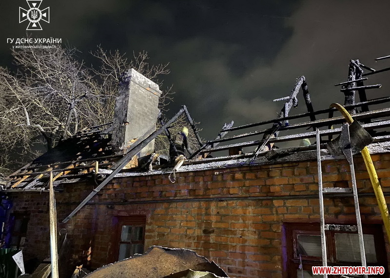 «14 січня о 18:32 до Служби порятунку “101” надійшло повідомлення про пожежу в житловому будинку в Житомирі. На місці події рятувальники встановили, що вогнем охоплена покрівля оселі загальною площею 50 кв.м та існувала загроза поширення полум’я на сусідні будинки. Для безперебійної подачі води було залучено додаткові сили та засоби. Рятувальники одночасногасили палаючу будівлю та відбивали вогонь від поруч розташованих осель. Вже за 20 хвилин вдалося запобігти розповсюдженню вогню та о 19:17 ліквідувати пожежу. Вогнем знищено дах будинку та домашні речі. Не допущено поширення пожежі оселею та на сусідні будівлі. На місці працювали 18 рятувальників та три одиниці техніки», - йдеться в повідомленні.