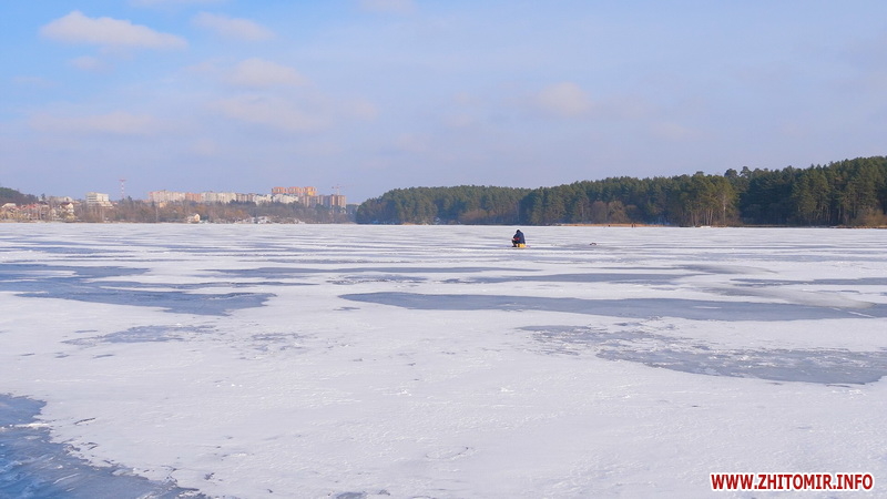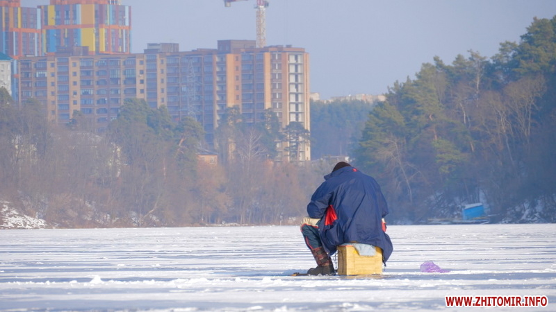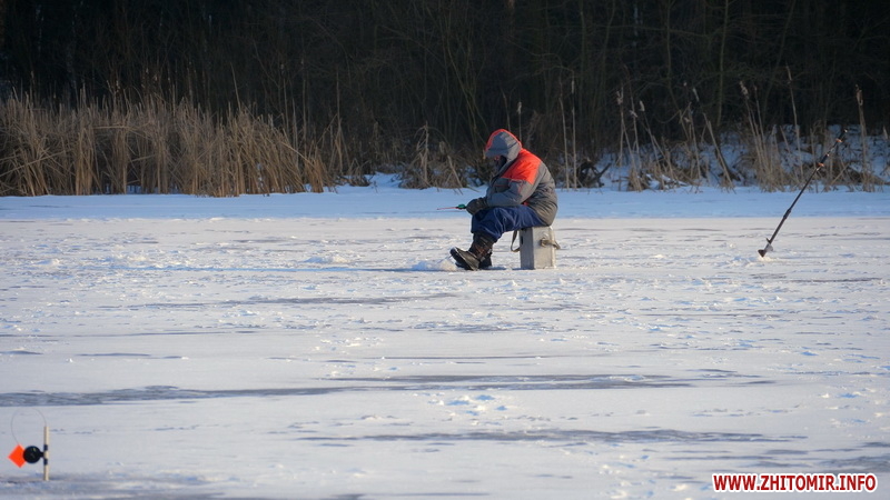 В обідню пору 22 січня в житомирському гідропарку було сонячно, сніжно та майже безлюдно. Тут можна побачити лише кількох перехожих, які кудись поспішають, та поодиноко рибалок, які вже виловили свою «здобич» і обнадійливо сподіваються спіймати ще, доки дозволяє погода. Адже протягом робочого тижня лише в понеділок синоптики не прогнозували опадів, на відміну від решти днів, коли буде мокрий сніг, дощ та плюсова температура. Тож охочі із задоволенням поспішали насолодитися можливістю такої сприятливої погоди для відвідування гідропарку та Тетерева.