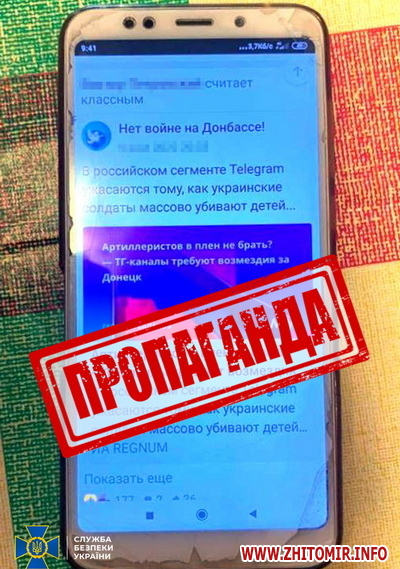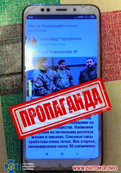На Житомирщині співробітники Служби безпеки викрили чергового інтернет-агітатора, який поширював у соціальній мережі антиукраїнські фейки та виправдовував збройну агресію рф.