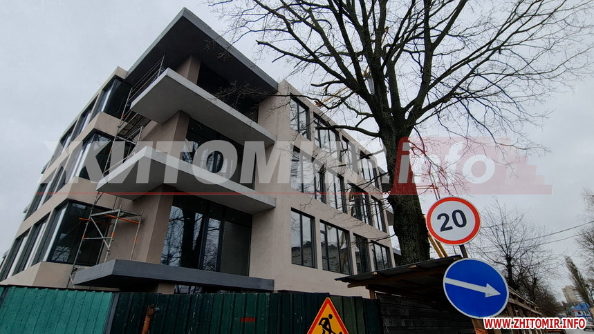 В Житомирі на вулиці Старовільській, де колись знаходився комунальний ЖЕК №5, за рік майже завершили будівництво чотириповерхового торговельно-офісного центру, який більше нагадує елітний таунхаус.