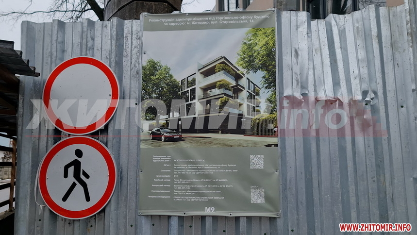 «За адресою вулиця Старовільська, 14 проводять реконструкцію адмінприміщення під торговельно-офісну будівлю, роботи виконує ТОВ «Сталь Сервіс 3000». Повідомлення про початок виконання будівельних робіт подали в листопаді 2022 року. Планують звести чотириповерхову будівлю», - розповідав 14 квітня минулого року в коментарі Житомир.info начальник управління ДАБК Житомирської міської ради Олександр Магдюк.