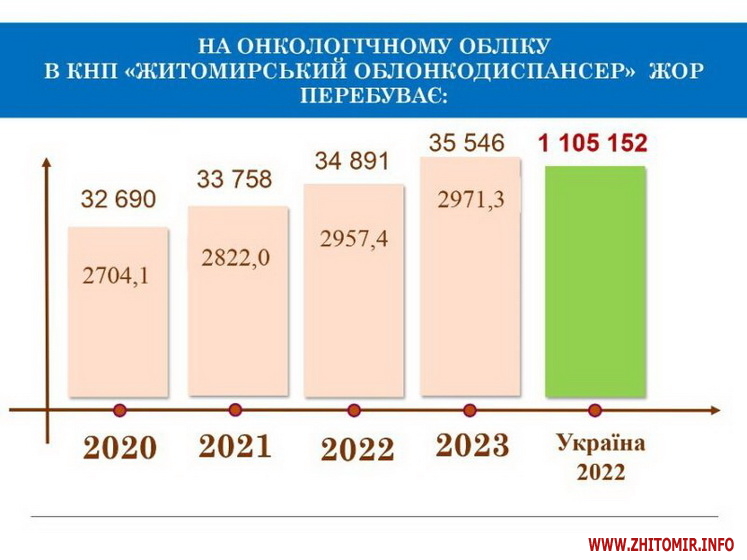 Понад 35 500 онкохворих перебувають на обліку у Житомирській області. За минулий рік зареєстровано більш як 4 000 нових випадків.