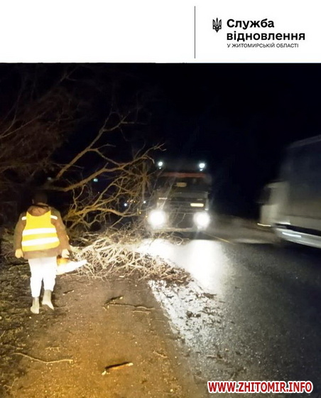 Минулої доби на дорогах державного значення Житомирської області працювали 12 дорожників та 11 спецмашин: розчищали дороги від снігу та зламаних дерев.