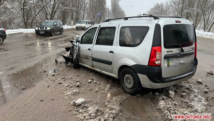 У Житомирі вранці 10 лютого на вул.Покровській сталася ДТП за участю автомобілів Man та Dacia, рух транспорту в напрямку виїзду з міста перекритий.