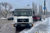 Попередньо, 10 лютого близько 08:10 по вулиці Покровській в обласному центрі сталося зіткнення автомобіля «Dacia» під керуванням 34-річного киянина з вантажівкою «MAN», яка рухалася у зустрічному напрямку.