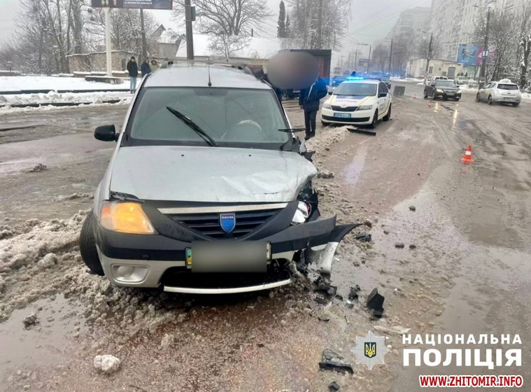 Нагадаємо, у Житомирі вранці 10 лютого на вул. Покровській сталася ДТП за участю автомобілів Man та Dacia, рух транспорту в напрямку виїзду з міста перекритий.