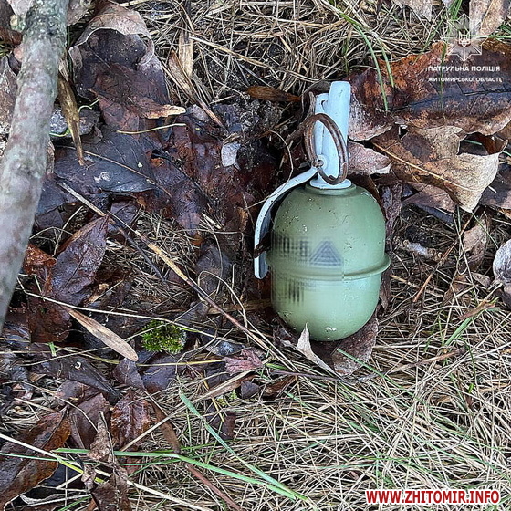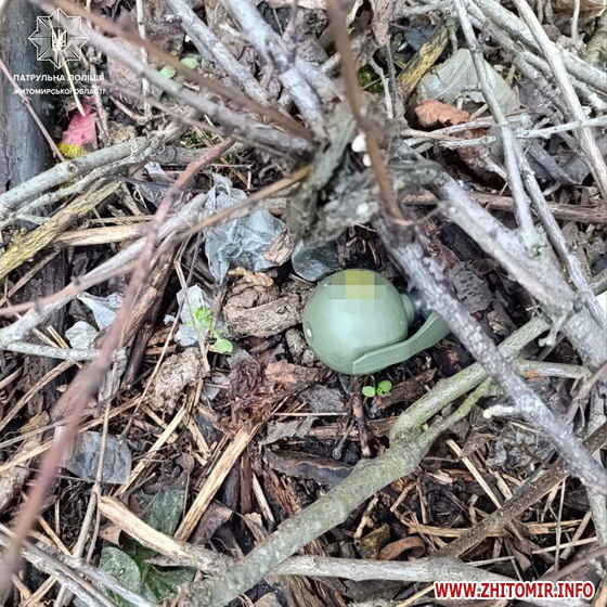 «Вибухонебезпечні предмети виявили у Житомирі на Київському шосе та у провулку Яблуневому. Патрульні забезпечили охорону місць та викликали фахівців, адже один із предметів виявився бойовою гранатою», - повідомила Тетяна Носадчук.