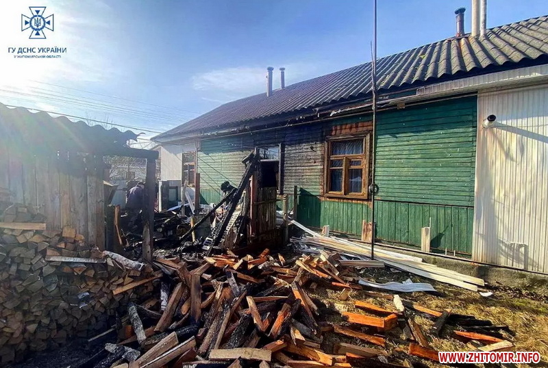 У Олевську вогонь знищив сарай з дровами та частково пошкодив сайдинг на будинку.