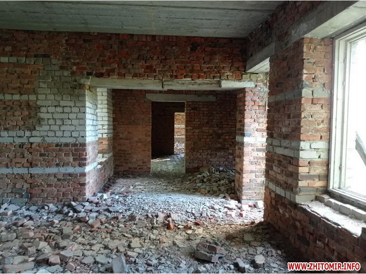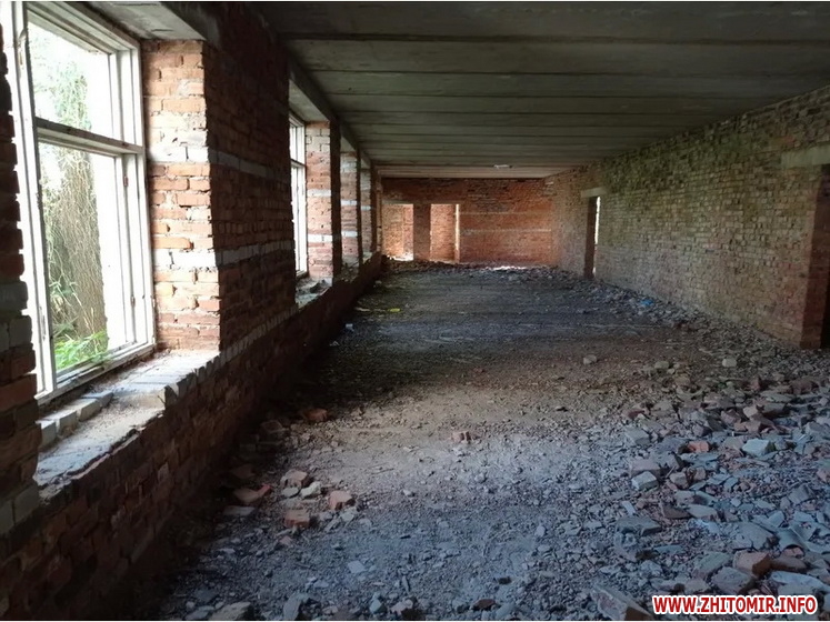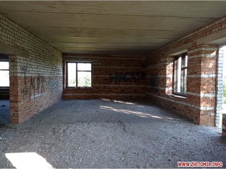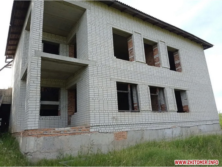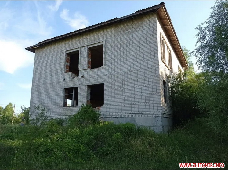 «Об’єкт приватизації – об’єкт незавершеного будівництва – дитячий садок на 140 місць у с. Хомутець (двоповерхова цегляна будівля з підвалом, фундамент – бетонні блоки, перекриття – збірні з/б плити, покрівля – азбестні листи, сходи – з/б марші; інженерні комунікації не підведені). Рівень будівельної готовності 46%. Об’єкт незавершеного будівництва розташований на околиці населеного пункту. Об’єкт не огороджений та не охороняється. Земельна ділянка під об’єктом окремо не відведена. Балансоутримувач – Департамент регіонального розвитку Житомирської обласної державної адміністрації», - йдеться в описі лота.