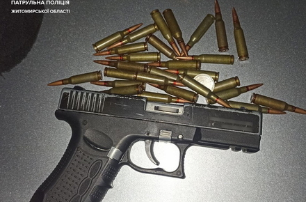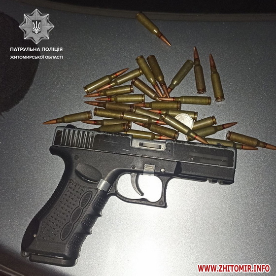 У Житомирі на вул. Великій Бердичівській патрульні знайшли у водія ймовірно пістолет та набої. Ще один пістолет того ж дня виявили ТОРівці у чоловіка на вул. Покровській під час відпрацювання виклику про бійку.