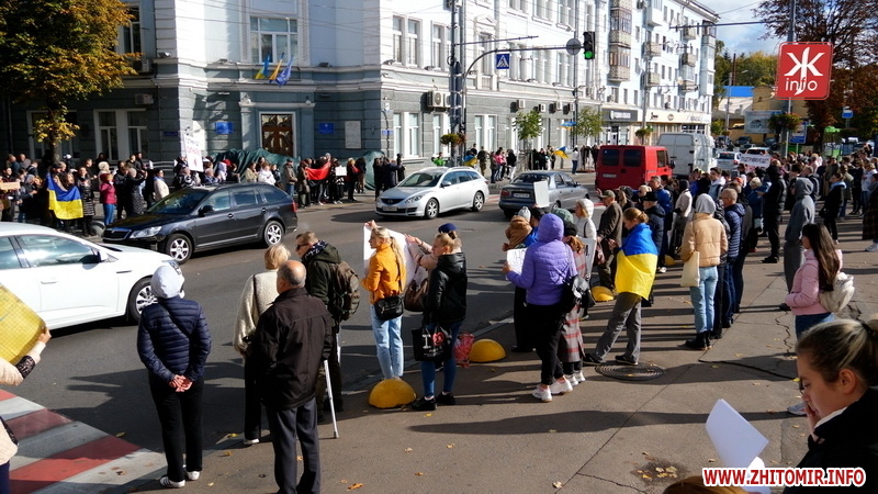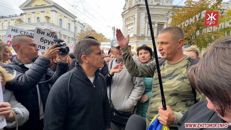 І хоча місцева влада переконувала, що видатки на підтримку ЗСУ – це пріоритет, втім частина житомирян в це не дуже вірила, тим більше, що нову плитку та реконструкцію скверів бачили, а про допомогу захисникам переважно лише чули. Зрештою 16 жовтня у центрі Житомира влаштували акцію з вимогами: «Зброя замість тротуарів», «Не бруківка, а військовим дрони».