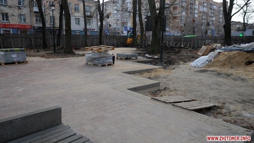 З березня 2023 року управління капітального будівництва Житомирської міської ради взялося за реконструкцію скверів: уклали кілька десятків договорів на проєкти та виконання робіт, витративши сумарно більш ніж 30 млн грн, у планах було облаштування десяти скверів, але один до кінця 2023 року так і недоробили.