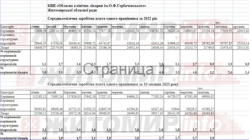 В комунальному некомерційному підприємстві «Обласна клінічна лікарня ім.О.Ф.Гербачевського» Житомирської обласної ради у 2023 році середня зарплата керівництва була 48-137 тис. грн, тоді як лікарям на місяць нараховували від 23,5 до 29 тис. грн.