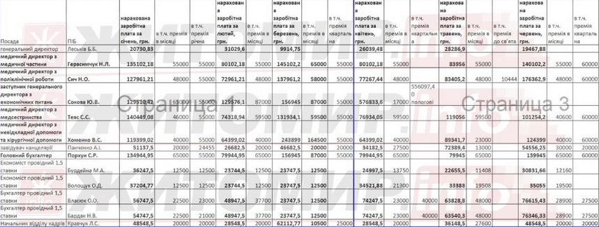 Нижче у таблиці – середні зарплати керівників обласної клінічної лікарні, керівників структурних підрозділів, лікарів та різниця в разах.