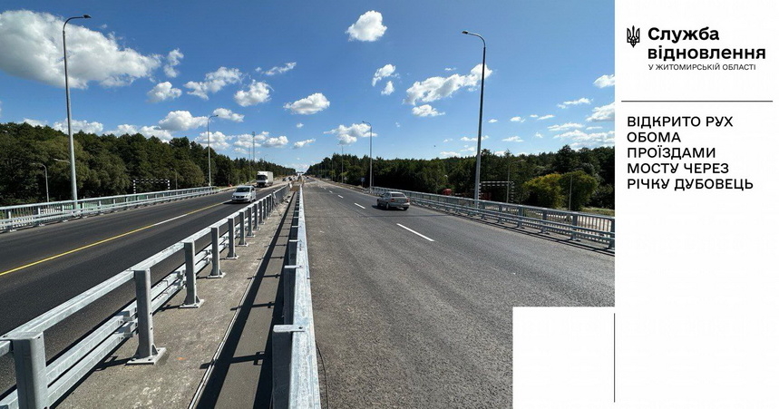 Зауважимо, що про відкриття для транспорту мосту через річку Дубовець біля села Царівка Служба відновлення та розвитку інфраструктури у Житомирській області звітувала 24 серпня 2023 року.