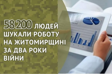 На Житомирщині за два роки війни 58200 людей шукали роботу через центр зайнятості.