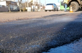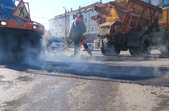 «Для аварійного ремонту залучена «вітродуйка», бо після зими ями в піску, багато сміття, то ми видуваємо, прочищаємо їх. Потім просушуємо де волога, бо асфальт ще не прогрівся, не та температура. Потім поливаємо емульсією. Далі приїжджає гаряча асфальтобетонна суміш і в темпі потрібно працювати, щоб асфальт не остигав, бо зараз не літо і треба швидше», – пояснює майстер дільниці Дмитро Пічкур.