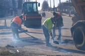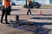 З початку тижня у Житомирі потеплішало, тому комунальники розпочали латати ями.
