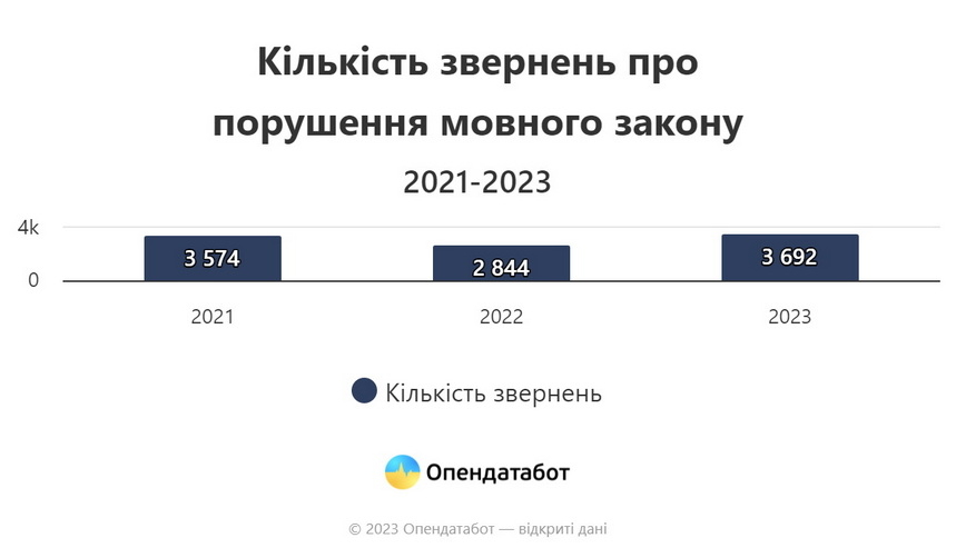 Дослідження під назвою «Понад 3,6 тисячі звернень щодо порушення мовного закону у 2023 році. Як карають порушників?» опублікував 1 березня Opendatabot.