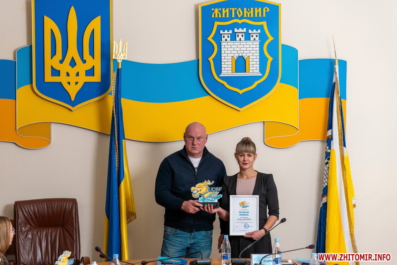 На засіданні звітної конференції президент федерації України Валерій Моргун вручив міському голові Сергію Сухомлину та начальнику управління у справах сім'ї, молоді та спорту Житомирської міської ради Ірині Ковальчук почесні грамоти Міністерство молоді та спорту України за вагомий особистий внесок у розвиток фізичної культури і спорту України.