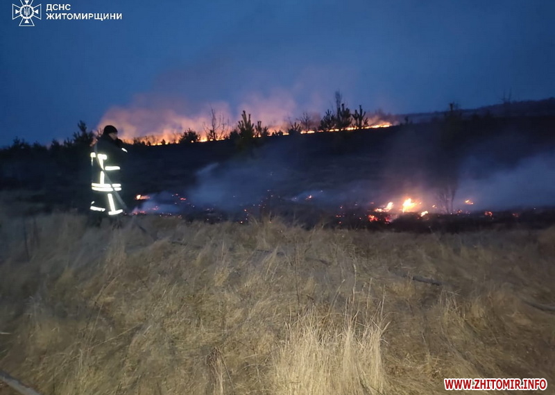 «Упродовж минулої доби на території області рятувальниками ліквідовано 18 займань минулорічної сухої рослинності, чагарників, сміття тощо та 3 загоряння на торфовищах. Загалом вогнем пройдено понад 17 га території регіону. На жаль, є місце травмування людини на одній із таких пожеж. Так, о 14:00 у с. Биків Брусилівської територіальної громади Житомирського району виникло загорання високої сухої трави на площі 0,5 га. Через вітряну погоду вогонь швидко наближався до приватних домогосподарств. Під час спроб самостійного гасіння пожежі травмувався 32-річний місцевий мешканець, який відбивав полум’я від власної оселі. За попередньою інформацією, він отримав 25-30% опіків тіла. Прибулі за викликом медики госпіталізували його до обласної лікарні», - йдеться в повідомленні.