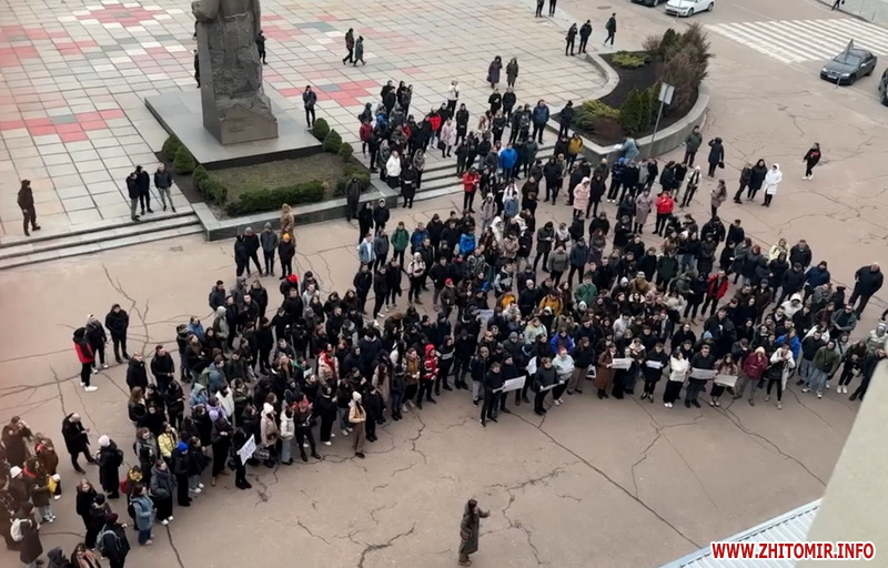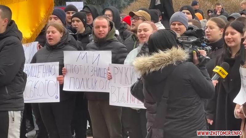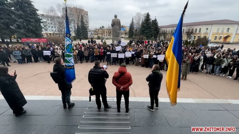 Понад 200 студентів Поліського національного університету в обідній час 7 березня влаштували мітинг під стінами Житомирської обласної ради, де в цей час проходила сесія.