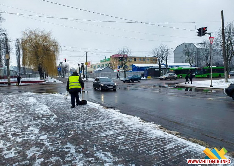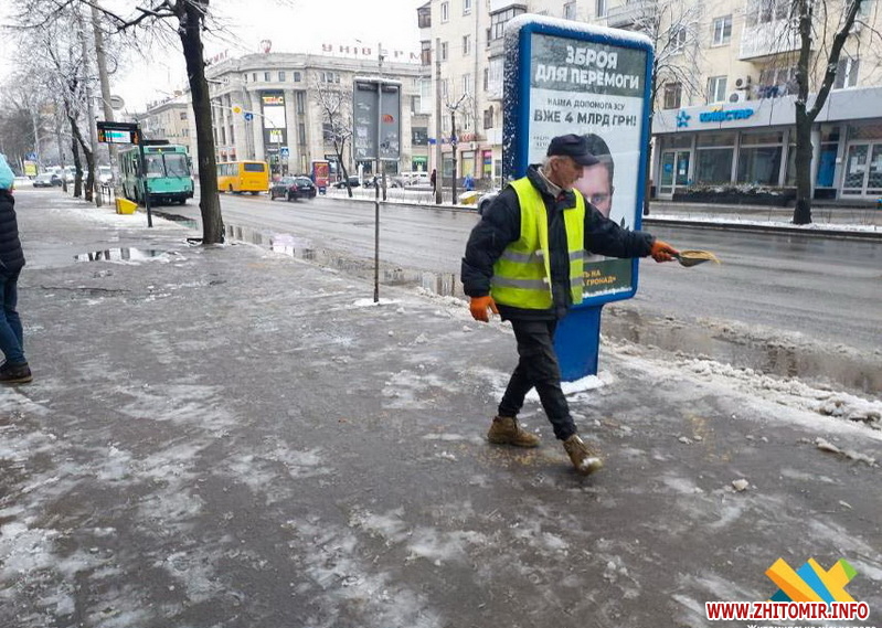 Упродовж ночі на дорогах Житомира використали 108 тонн піскосуміші.
