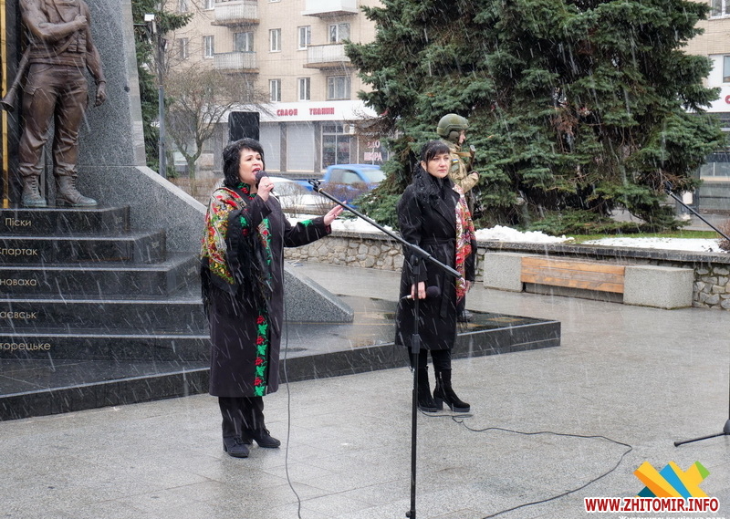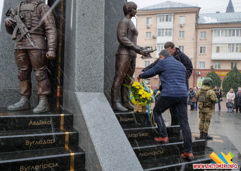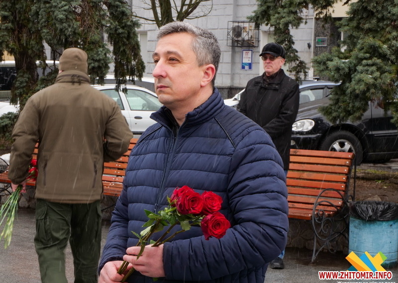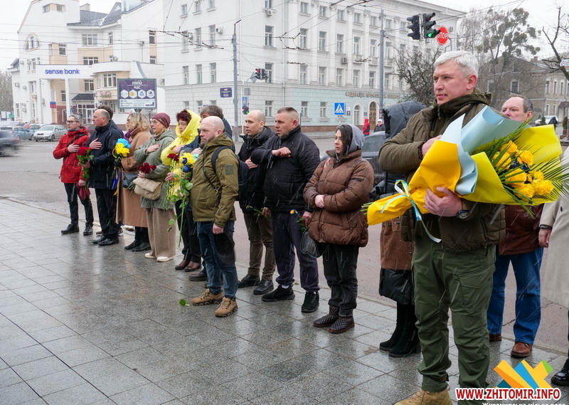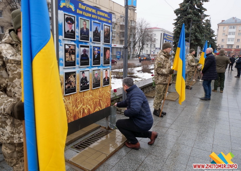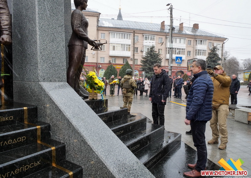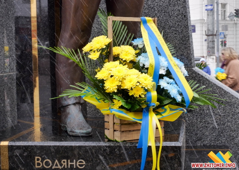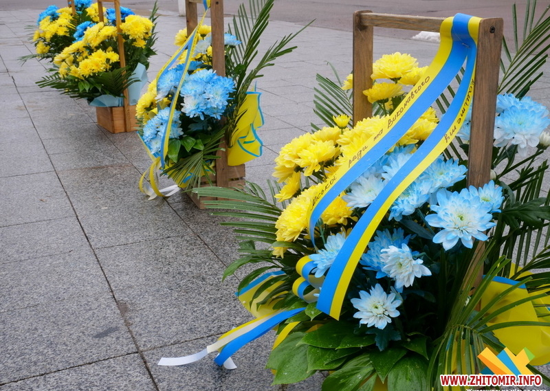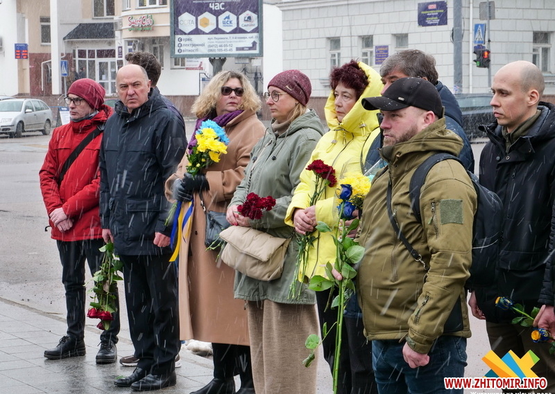 У цей день житомиряни прийшли до пам’ятного знаку «Захисникам України у війні з російським агресором», аби вшанувати тих, хто віддав своє життя за Україну.