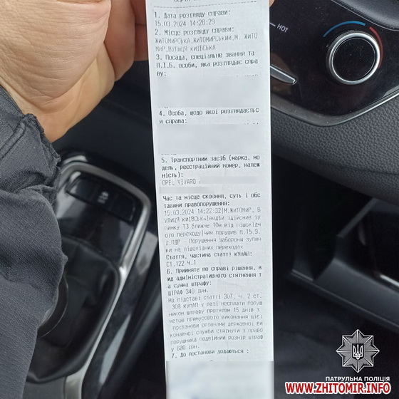У Житомирі патрульні притягнули до адмінвідповідальності водія, який порушив ПДР.