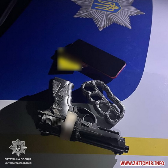 У Житомирі під час комендантської години патрульні зупинили чоловіка, який мав при собі предмети, схожі на зброю – кастет та пістолет. Речі вилучили та відправили на експертизу.