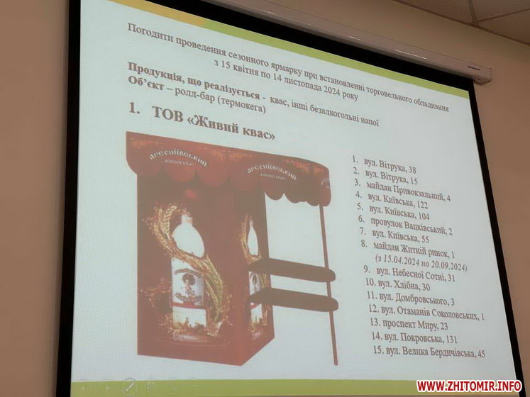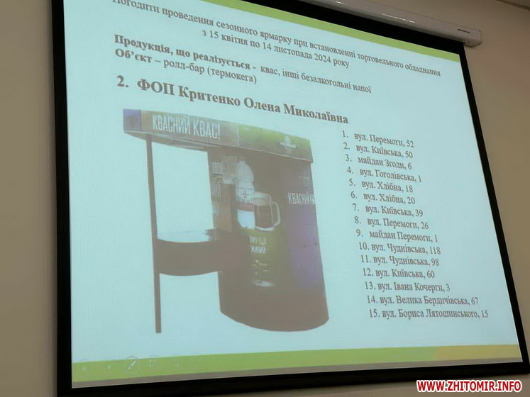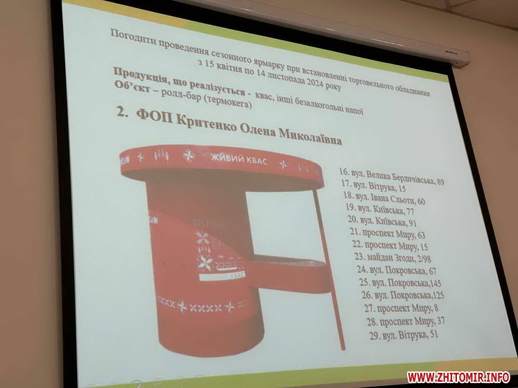Виконком дозволив чотирьом суб’єктам господарювання проводити сезонну торгівлю на території Житомирської міської територіальної громади.