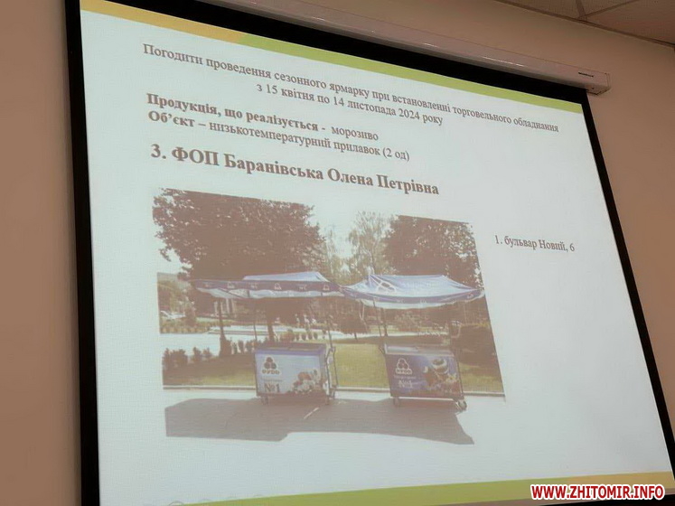 Нагадаємо, на засіданні виконавчого комітету 15 лютого минулого року розглядали питання про організацію сезонної торгівлі та надання послуг у сфері розваг на території Житомирської громади: дозволили трьом підприємцям продавати безалкогольні напої, прокат дитячих електромобілів на Старому Бульварі та дитячий електропотяг на Михайлівській.