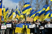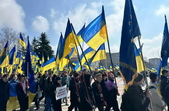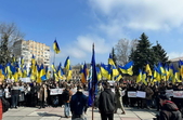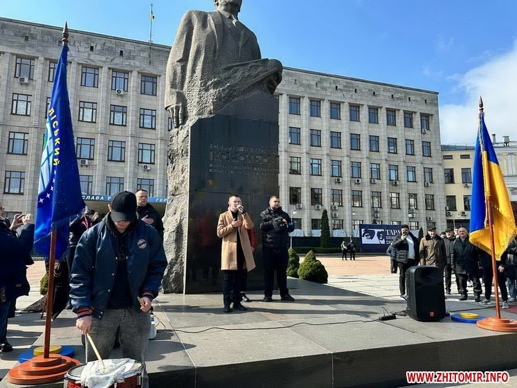 Кількасот людей з національними прапорами і плакатами прийшли від центрального корпусу ПНУ на Старому бульварі до майдану Корольова, де о 12:00 розпочався анонсований напередодні мітинг.