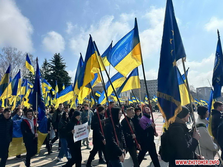 Студенти Поліського національного університету вдень 21 березня влаштували акцію в центрі Житомира.