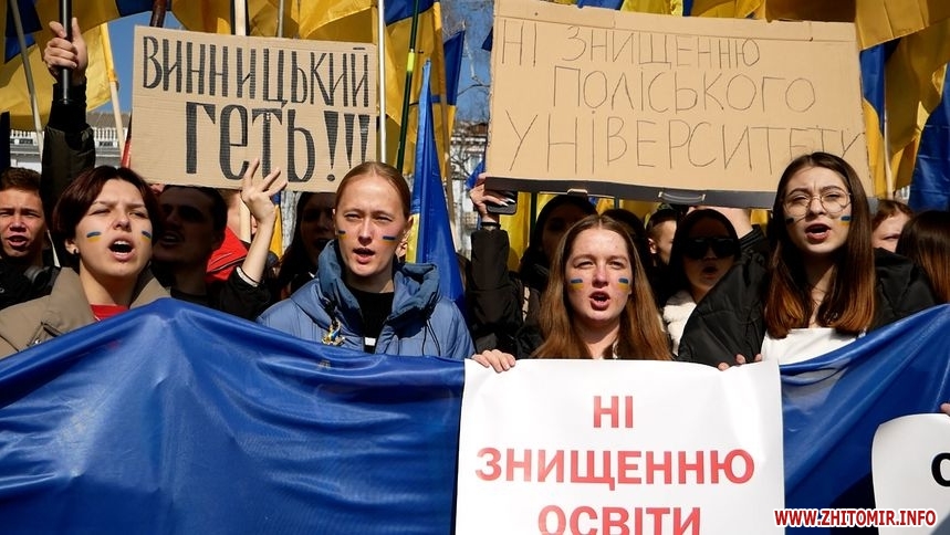 Студенти та працівники Поліського національного університету 21 березня вийшли на акцію протесту проти реорганізації їх навчального закладу шляхом приєднання до ЖДУ ім. Івана Франка.