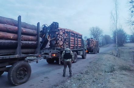 «В ході реалізації оперативної інформації прикордонники 9 загону імені Січових Стрільців в межах контрольованого прикордонного району зупинили дві вантажівки завантажені діловим лісом. З’ясувавши, що лісодеревина перевозиться у незаконний спосіб, а саме у водіїв документи на вантаж не відповідали дійсності, прикордонники викликали на місце зупинки транспортних засобів слідчу-оперативну групу від Національної поліції в Житомирській області», - йдеться в повідомленні.