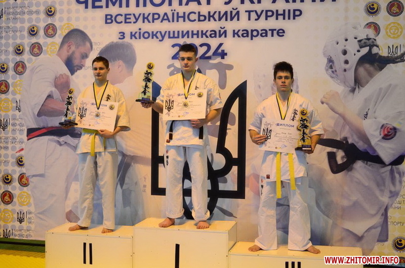Нагадаємо, 9-10 грудня у Вінниці відбулися комплексні змагання з кіокушинкай карате, а саме: Чемпіонат України серед ветеранів старше 35 та 45 років, Кубок України серед дорослих та Всеукраїнський турнір серед юніорів та юнаків. Житомирські спортсмени привезли 12 нагород.