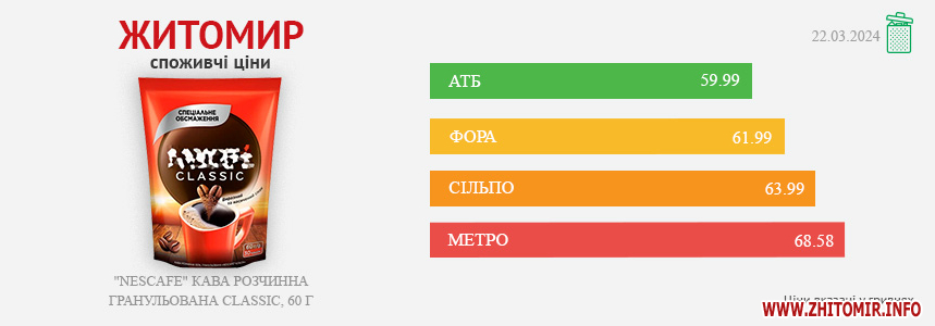 Моніторинг здійснено на основі інформації, отриманої за методом контрольної закупки 22.03.2024 р. у місцях продажу: АТБ, пр. Миру, 15 А, Фора, вул. Лятошинського, 2, Метро, вул. Ватутіна, 55-в, Сільпо, пл. Житній ринок, 1, Ашан, вул. Київська, 77