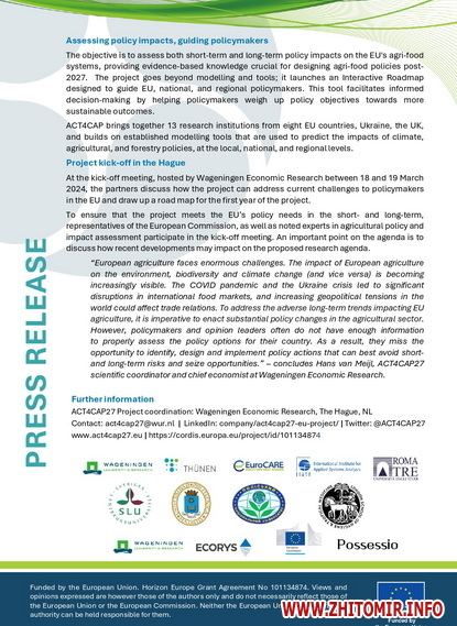 Поліський національний університет розпочав реалізацію нового проєкту ACT4CAP27 Project, що фінансується у рамках програми Horizon Europe.