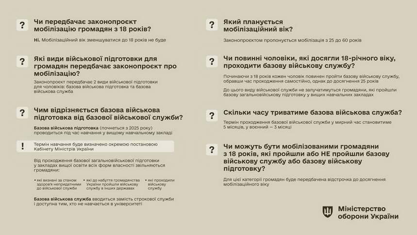 Відповідну інформацію та інфографіку з відповідями на найпоширеніші запитання оприлюднили ввечері 27 березня на Facebook-сторінці Міноборони.