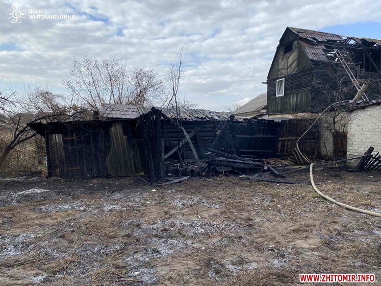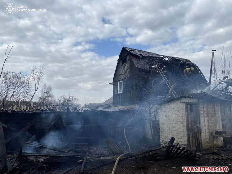 «Увечері в п'ятницю у с.Любовичі Малинської територіальної громади зайнялися 1 куб.м дров у дерев'яній господарчій споруді. Селяни приборкали пожежу власними силами та не допустили її розповсюдження далі. А опівночі у с.Жлобне Ярунської територіальної громади спалахнула пожежа у дерев'яній господарчій споруді і поширилася на дерев'яний житловий будинок площею 80 кв.м. О 02:10 зусиллями двох відділень рятувальників пожежу вдалося приборкати. Вогнем знищені будівля господарчої споруди та покрівля у помешканні. Постраждалих немає. Усі обставини події з'ясовуються фахівцями», - зазначається у повідомленні.