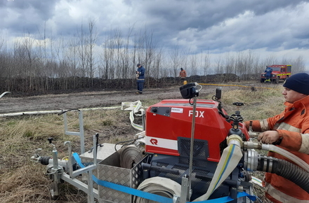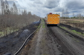 Крім того, у тому ж районі триває гасіння торфу, що зайнявся вчора зранку поблизу с. Рудня-Озерянська Олевської територіальної громади на площі 1,7га та 1 га у с. Міролюбивка Лугинськоі ТГ. На місцях працюють по три пожежних розрахунки, площу пожежу вдалося зменшити - у першому випадку до 0,8 га, у другому ж — до 0,5 га.