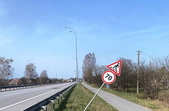Крім того, проводяться роботи з вирівнювання дорожніх знаків через пошкодження штормовим вітром.