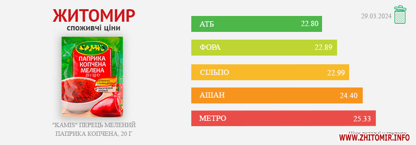 Моніторинг здійснено на основі інформації, отриманої за методом контрольної закупки 29.03.2024 р. у місцях продажу: АТБ, пр. Миру, 15 А, Фора, вул. Лятошинського, 2, Метро, вул. Ватутіна, 55-в, Сільпо, пл. Житній ринок, 1, Ашан, вул. Київська, 77
