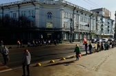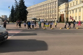 Кілька десятків людей прийшли з плакатами до міської ради, щоб нагадати про загиблих бійців та загальнонаціональну хвилину мовчання о 9:00.