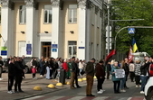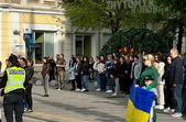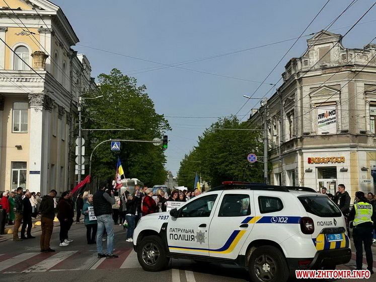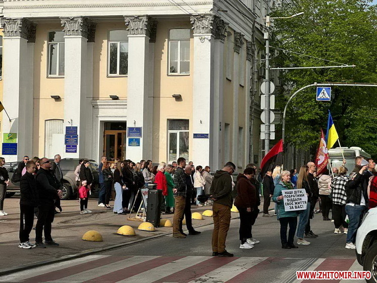 Біля міської ради, на вулиці Великій Бердичівській, до рідних загиблих захисників, які з минулого понеділка (8 квітня) виходять на акцію з плакатами та портретами тих, хто віддав життя за Україну, доєдналися ще близько сотні людей. На фото, зроблених журналістом Житомир.info, можна помітити посадовців Житомирської міської ради.