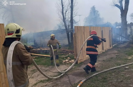 Ввечері того ж дня, в селищі Великі Коровинці Чуднівської територіальної громади Житомирського району бійці ДСНС загасили пожежу в приватному цегляному житловому будинку, яка поширилася на цегляну господарську будівлю. Ще одну подібну пожежу ліквідовано вночі в с. Глинівці Червоненської територіальної громади Бердичівського району.