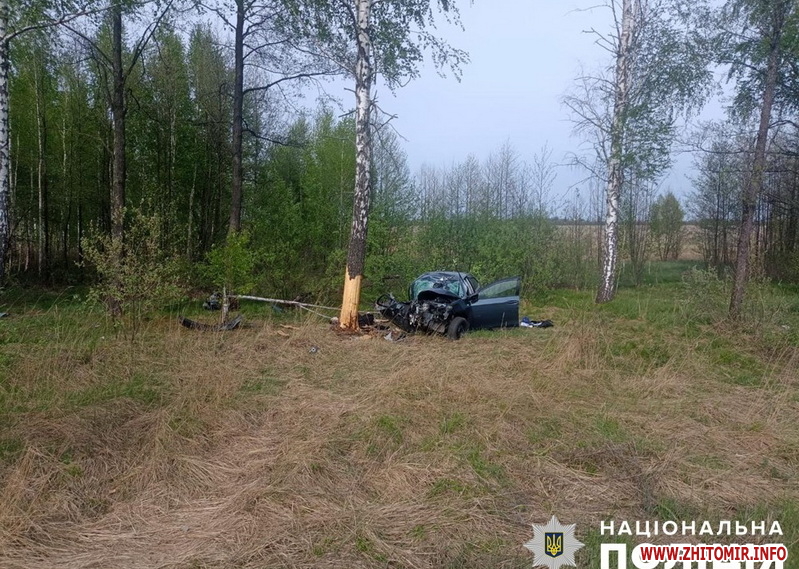 «Дорожньо-транспортна пригода сталася вдень 14 квітня на автотрасі Київ — Чоп, поблизу с. Броників Звягельського району. Правоохоронці попередньо з’ясували, що 22-річний житель столиці, керуючи автомобілем «Toyota Corolla», з’їхав у кювет, де відбулося зіткнення з деревом. У результаті керманич автівки з травмами та був доставлений до реанімаційного відділення Звягельської багатопрофільної лікарні. Нині його стан стабільний. На жаль, пасажир транспортного засобу, 27-річний житель м. Києва, загинув на місці події», - йдеться у повідомленні.