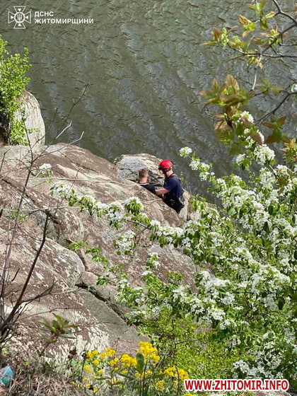 «14 квітня о 14:10 до Служби порятунку «101» надійшло повідомлення про те, що у Житомирі зірвалася зі скелі людина, потрібна допомога у його піднятті. За вказаними координатами оперативно виїхали бійці аварійно-рятувального загону спеціального призначення. На місце події вони з’ясували, що під час відпочинку 25-річний чоловік послизнувся на краю скелі та впав на берег з орієнтовної висоти 20 метрів. Рятувальники спустилися до місця падіння, вдягнули на постраждалого альпіністське спорядження та підняли його на верх», - йдеться в повідомленні.
