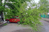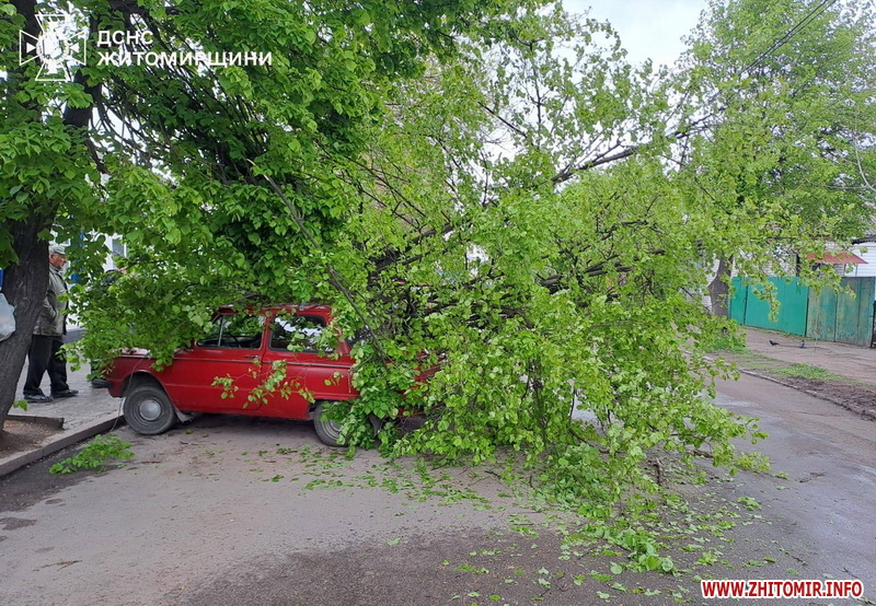 «18 квітня о 12:49 до Служби порятунку “101” надійшло повідомлення про те, що необхідна допомога рятувальників у прибиранні дерева в м. Коростень. Як з’ясувалося, внаслідок сильних поривів вітру стара осика впала на поруч припаркований автомобіль. Бійці ДСНС за допомогою бензопили розрізали та відтягнули дерево», - йдеться у повідомленні.